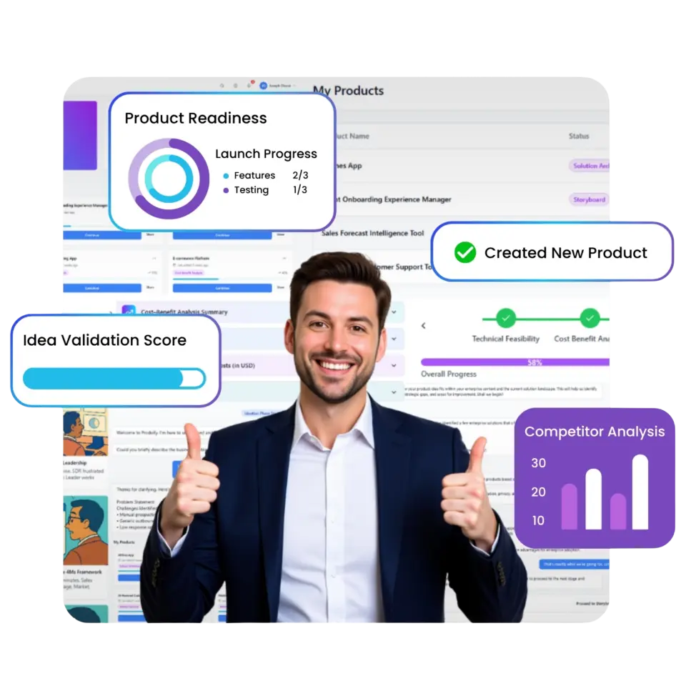 We realized most product ideas die on the napkin, not because they’re bad, but because they’re never validated, designed, or developed the right way. That’s why we built Prodeia, your AI product consultant, grounded in Frugal Innovation, turning raw ideas into ready-to-build product plans. Ideate, Validate, Design, and Develop, all in one seamless AI-powered flow. Built for enterprise innovators who want to move with precision.